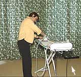 Lors du repassage il faut rehausser la planche à repasser, ou utiliser une chaise adaptée qui permette de garder le dos droit ! |