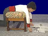 Lire son journal à plat ventre sur un pouf, les genoux au sol est une position très reposante. |
