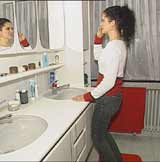 On évitera de faire le dos rond en se brossant les dents ou en se rasant; il est important de maintenir la colonne le plus droit possible, soit en tirant une jambe en arrière, |
