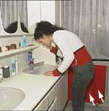 Même chez les gens en bonne santé cette position est déconseillée. Il est préférable de remplir le lave-vaisselle en s’accroupissant. |